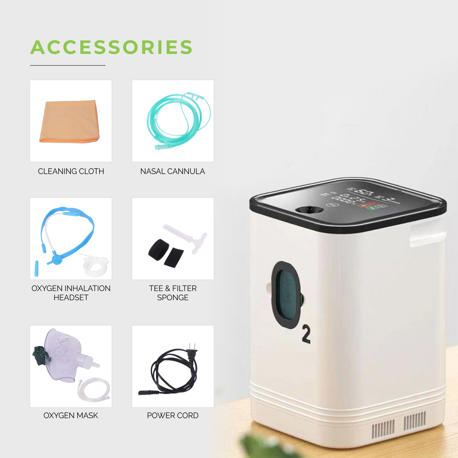 - Adjustable oxygen flow (1L-7L)