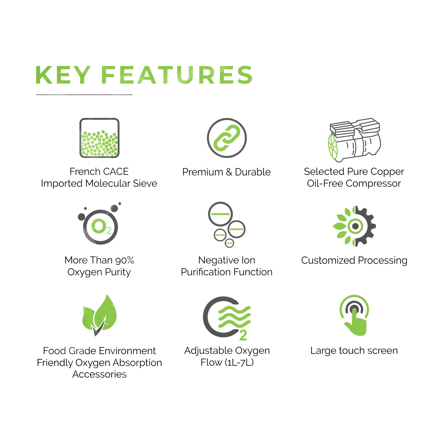 - More than 90% Oxygen Purity